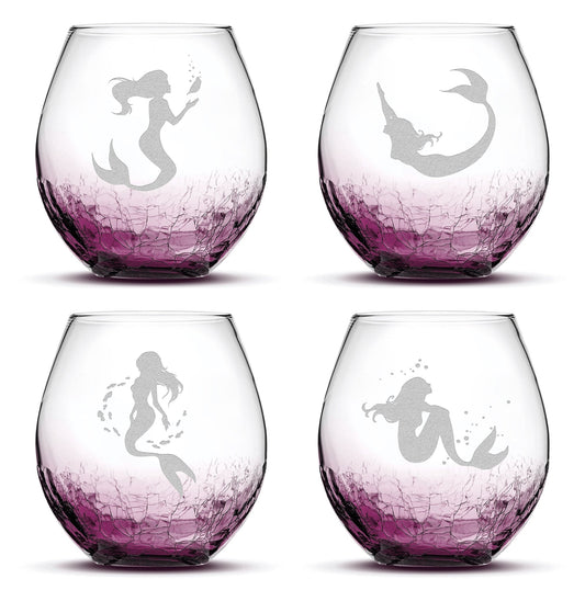 Crackle Wine Glasses, Mermaid Designs, 18oz, Set of 4
