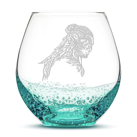 Bubble Wine Glass, Avatar Mermaid, Laser Etched or Hand Etched, 18oz