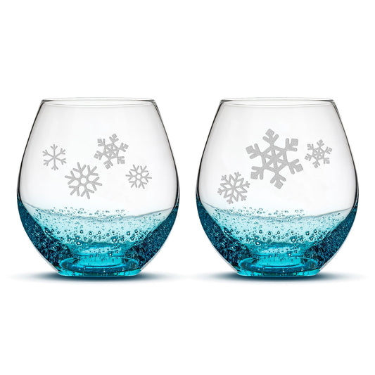 Bubble Wine Glass, Double Snowflakes, Laser Etched or Hand Etched, 18oz