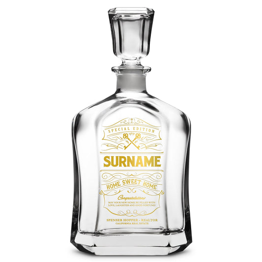 Customizable Welcome Home, Premium Refillable Diamond Style Liquor Decanter, Handmade, Handblown, Hand Etched Gifts, Sand Carved, 750ml, Laser Etched or Hand EtchedRegular price $69.99 USDRegular priceUnit price / per-