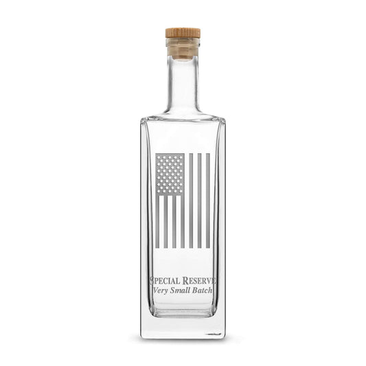 Premium Liberty Whiskey Decanter with Cork Stopper, American Flag, 750mL, Laser Etched or Hand Etched