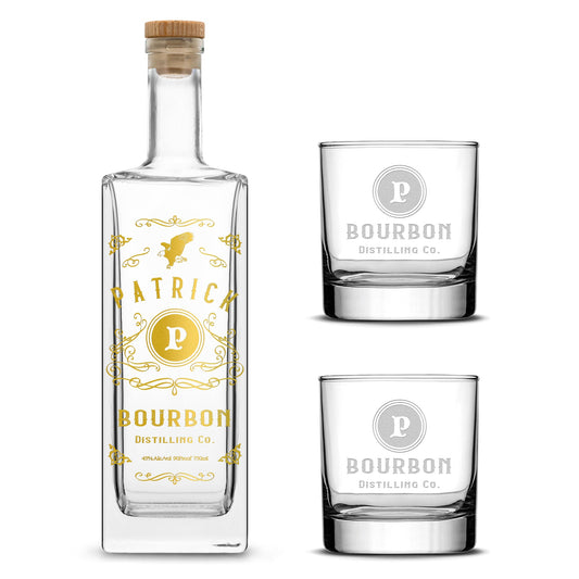 Customizable, Premium Liberty Style Liquor Decanter and (Set of 2) Premium Whiskey Glasses, Handmade, Handblown, Hand Etched Gifts, Sand Carved, 750ml, Laser Etched or Hand Etched