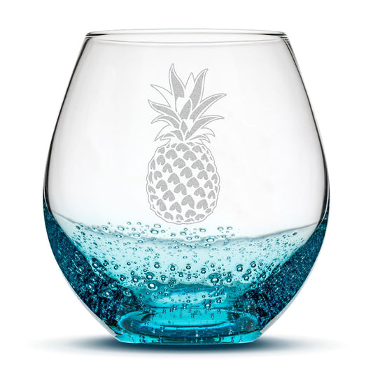 Bubble Wine Glass with Pineapple Design, Laser Etched or Hand Etched