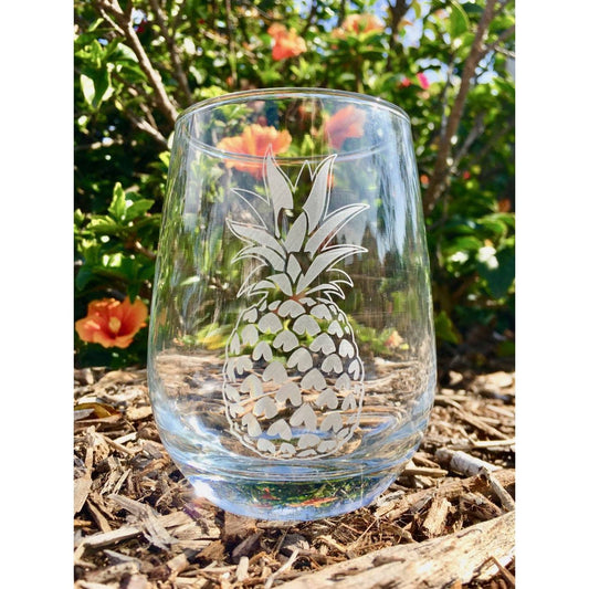 Premium Wine Glass, Pineapple Design, 16oz, Laser Etched or Hand Etched