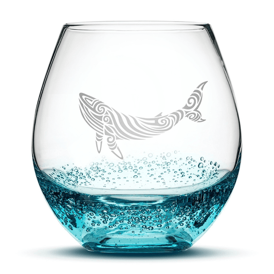Bubble Wine Glass with Tribal Whale Design, Laser Etched or Hand Etched