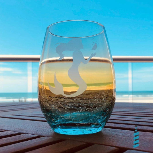 Crackle Wine Glass, Mermaid Design, Laser Etched or Hand Etched, 18oz