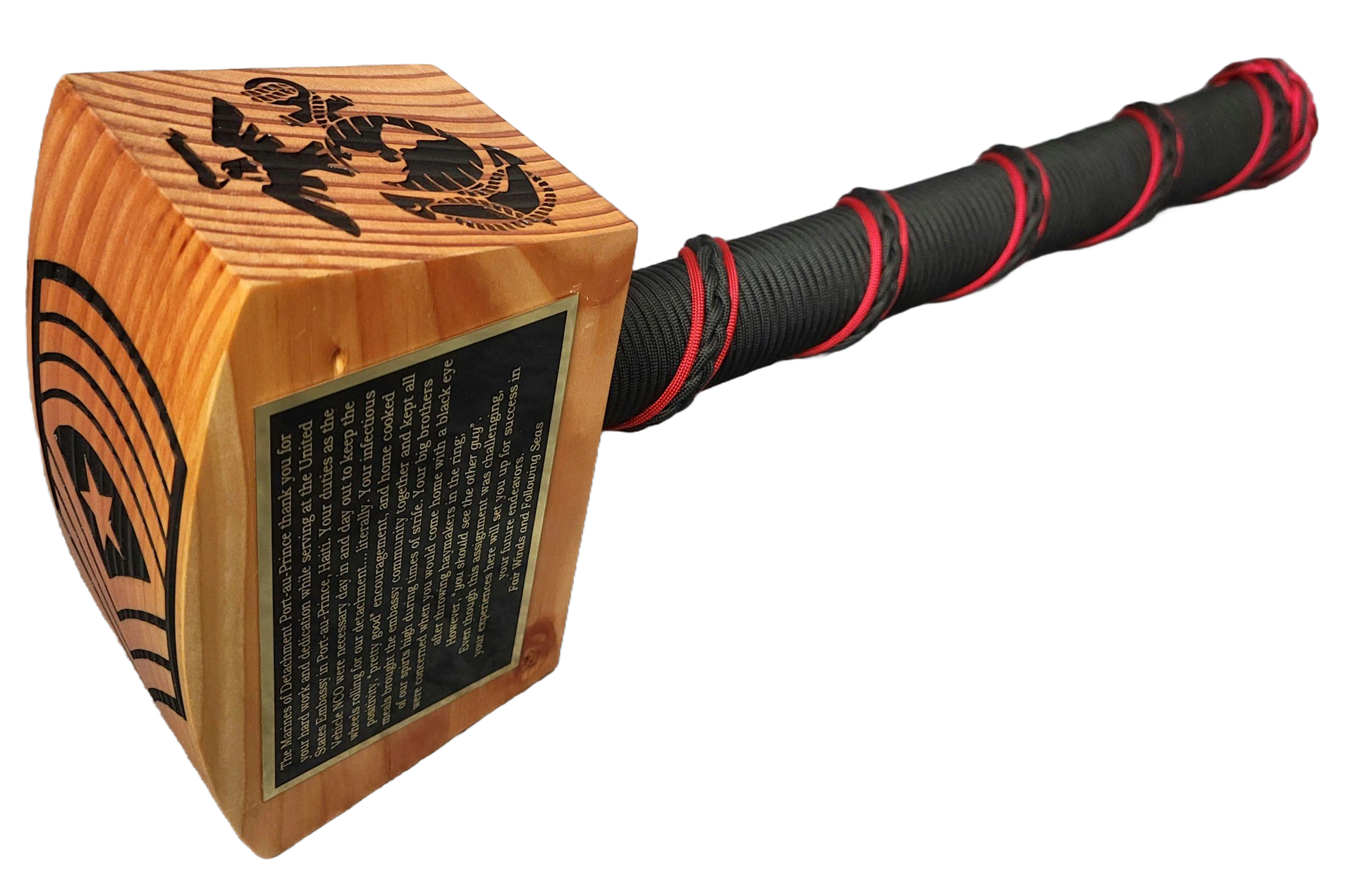 19" War Hammer, Black/Red Braid Custom hand wrapped para cord handle. Up to 4 custom images can be engraved.