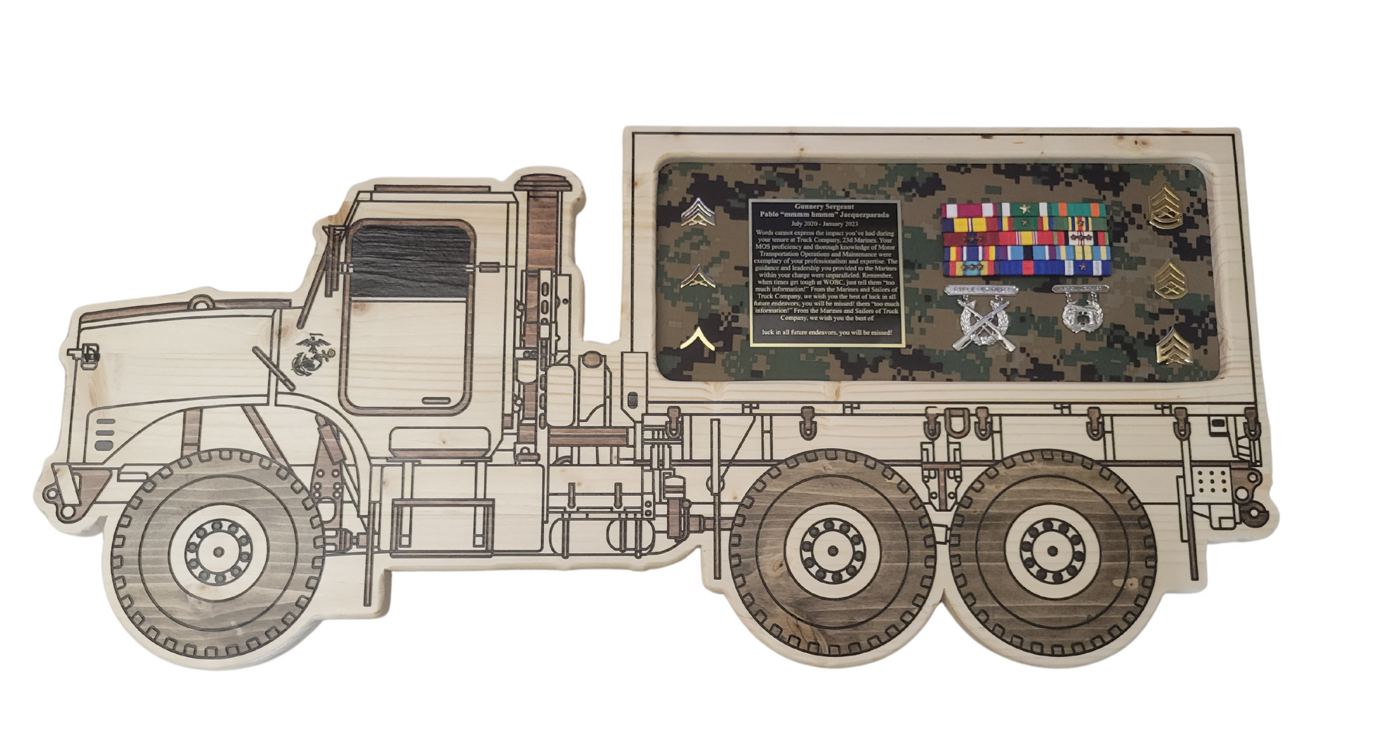 Our Custom Laser Engraved Wood 7 Ton Plaque is a perfect farewell gift for military personnel. Its intricate design and high-quality wood make it a lasting memento for loved ones. This plaque can be proudly displayed as a reminder of their courageous service.