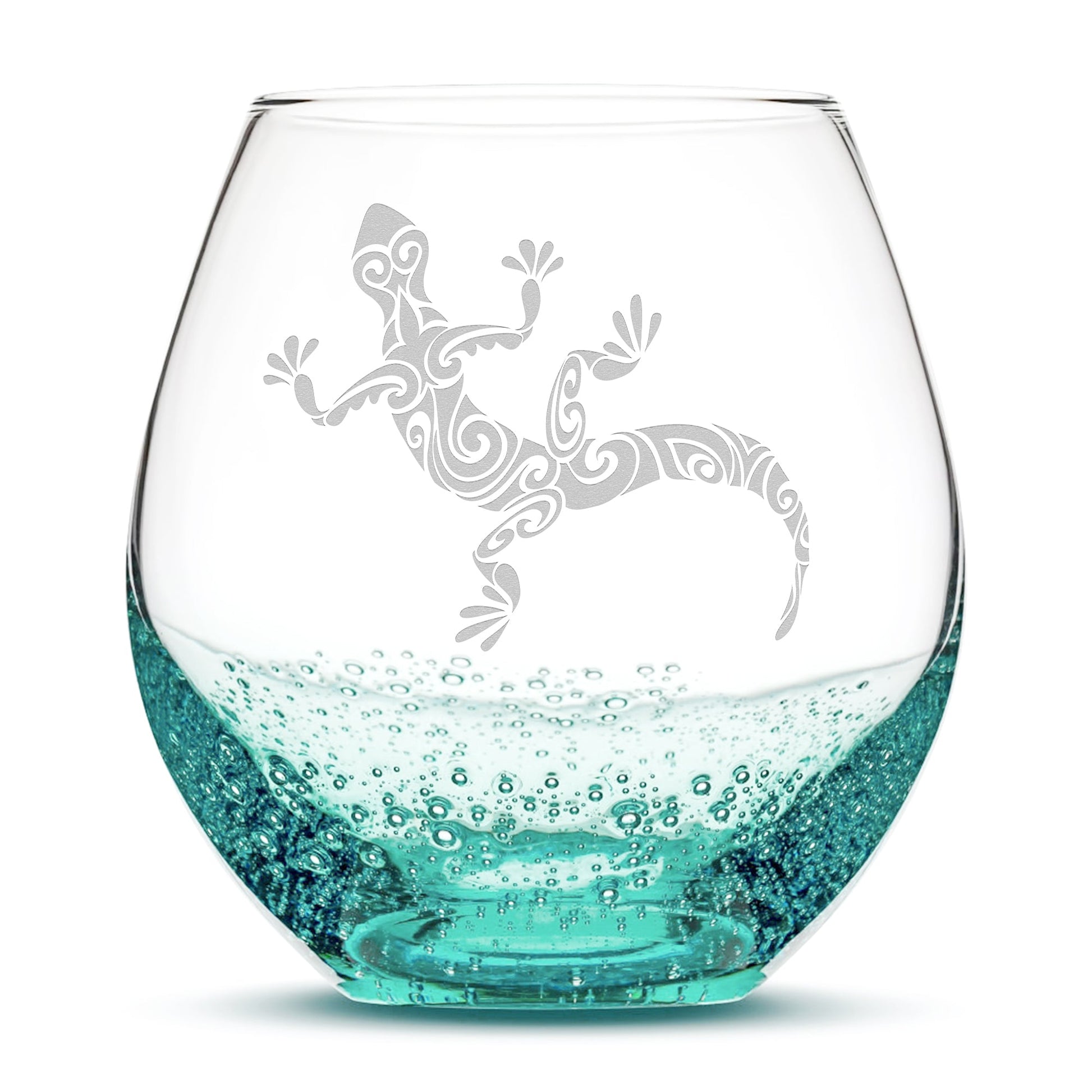 Bubble Wine Glass with Gecko Design, Laser Etched or Hand Etched