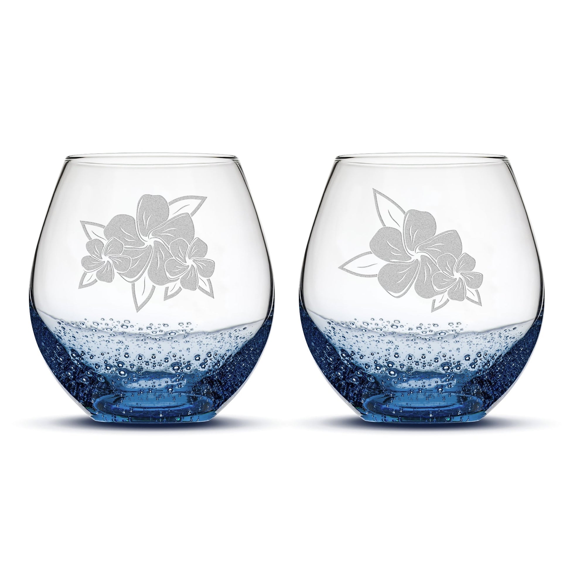Bubble Wine Glasses, Plumerias with Leaves, Set of 2