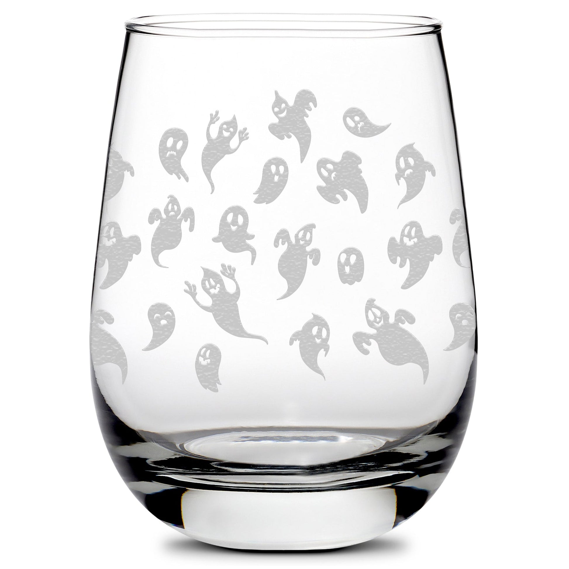 Integrity Bottles, Full 360°, Laser Etched, Halloween Ghost Wrap, Premium Wine Glass, Handmade, 16oz, Laser Etched or Hand Etched