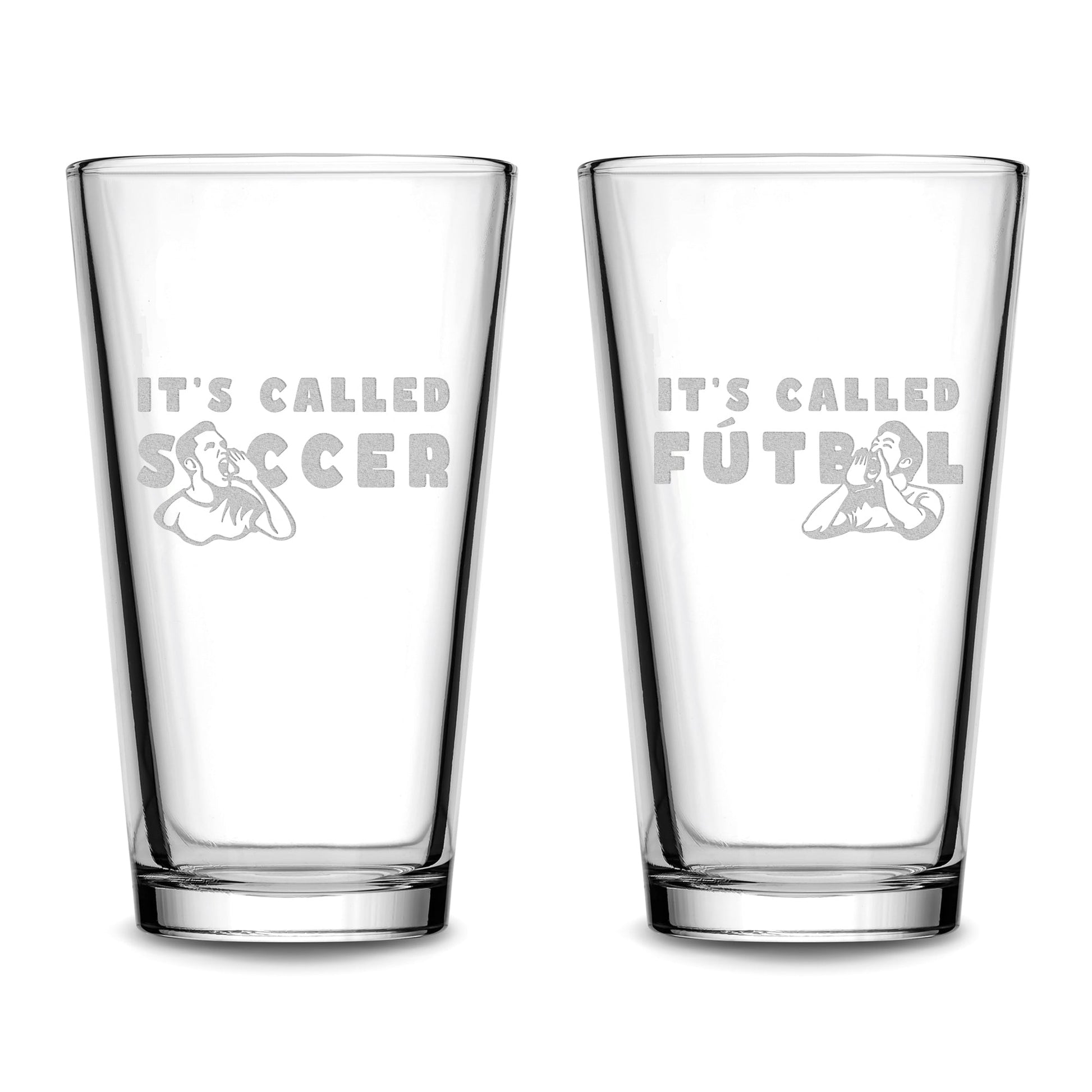 Premium Beer Pint Glasses, It's Called Soccer, Set of 2, Laser Etched or Hand Etched