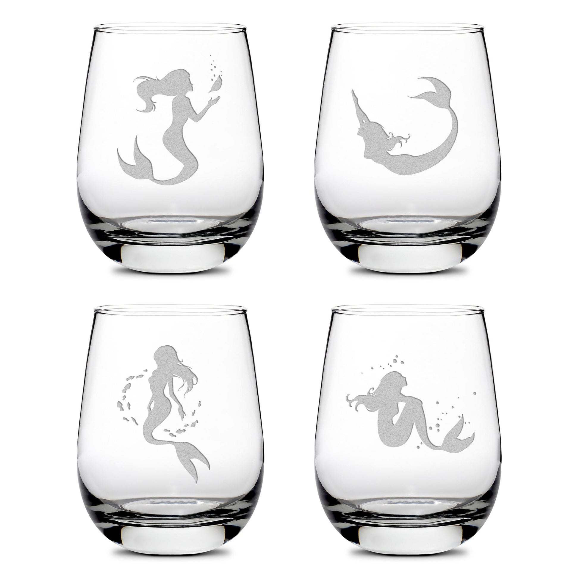 Premium Wine Glasses, Mermaid Designs, 16oz (Set of 4), Laser Etched or Hand Etched