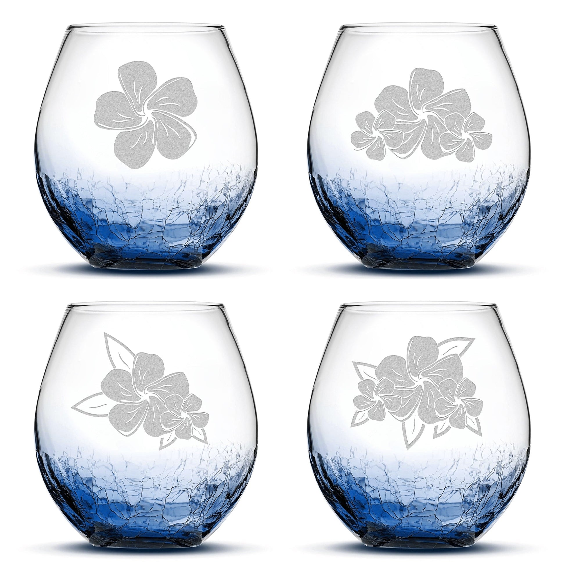 Crackle Stemless Wine Glasses, Plumeria, Set of 4,